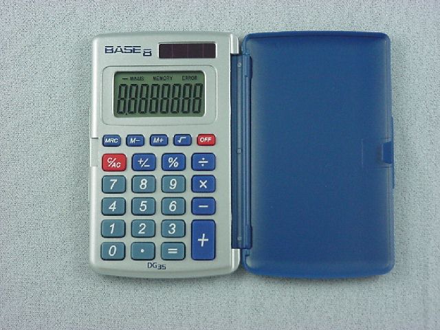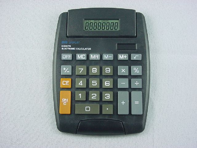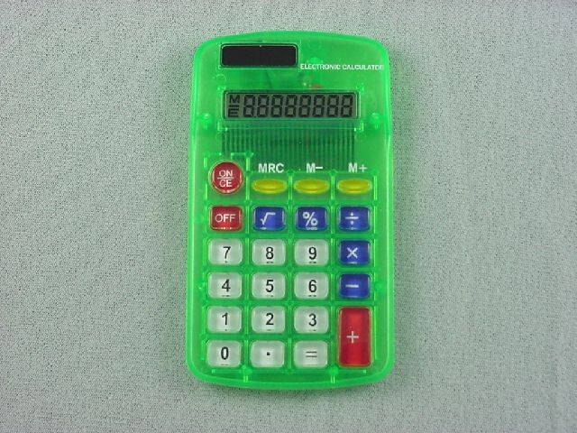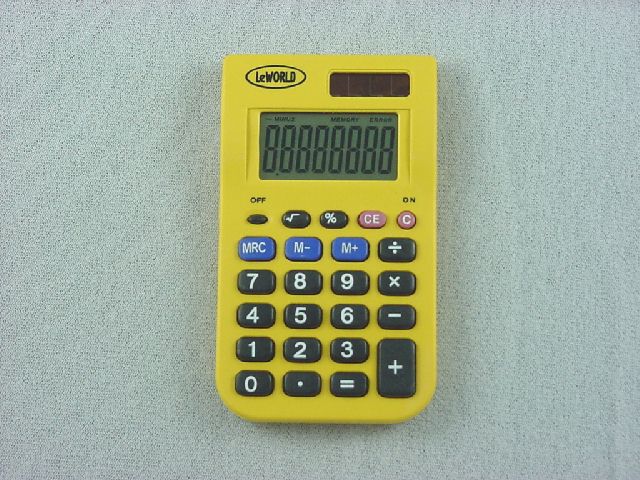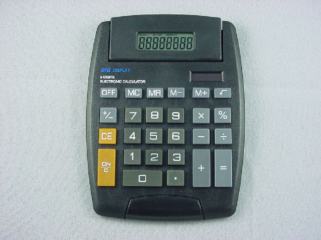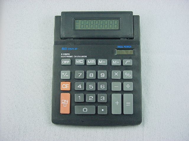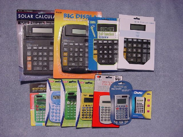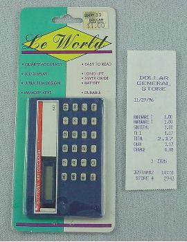 Some suggestions on purchasing one dollar calculators, or any calculator for that matter: Examine the calculator for physical damage, including a broken display or a broken solar cell if one is present. Shake the calculator and listen for the rattle of loose pieces. Through the packaging, try to turn the calculator on and then punch in all eights - look for missing segments in the display. Also, look at display contrast, a dim display suggests a weak battery.