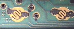 WARNING: Invoking the test described below may result in the clearing of data memory, program memory and mode settings. Further, this test requires partial disassembly of the calculator and possible modifications, which could result in permanent damage. See disclaimer before dissassembly or modification. The display self-test for the EC-4033 is invoked by repeated closure of the "TEST" pad located on the back of the PCB of the calculator. Four test patterns are displayed, each after the closure of the test pad. The first test pattern is a blank display, the second pattern is all segments energized, the third and fourth patterns energize alternate segments. Pressing AC, or the RESET button exits the self-test mode. |